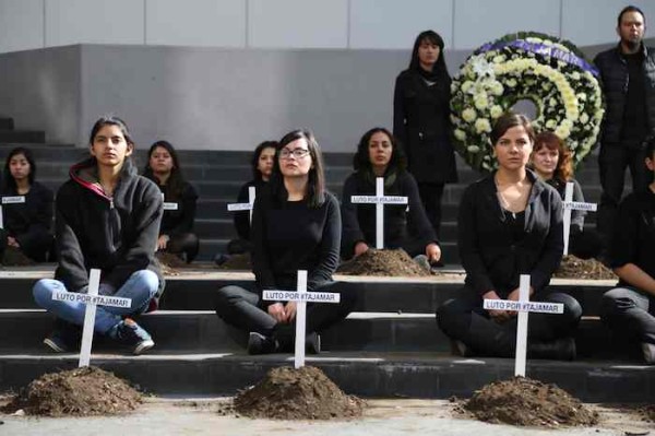 CANCÚN, QRoo. (UNIV)._ Activistas de Cancún, vestidas de negro, se declararon en “luto nacional” por la tala de manglares en México.
