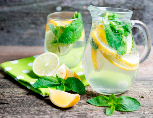 Corta cuatro limones amarillos y dos verdes en rodajas y colócalas al fondo de una jarra. Con la mano corta en trozos un puñito de hojas de menta y agrégalas. Llena la jarra con agua y enfría en el refrigerador por dos horas. Si quieres darle un giro dulce y natural, agrega 2 cucharadas de azúcar u otro endulzante.