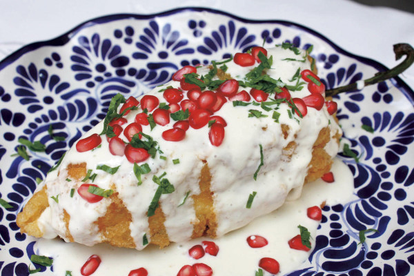 Este platillo símbolo nacional, en su receta original tiene ingredientes netamente poblanos: chile poblano de San Martín Texmelucan; queso de cabra de Tlatlauhqui; carne de res y de cerdo de la matanza de San Antonio del Puente; manzanas cosechadas en Zacatlán; duraznos de Huejotzingo; peras de las huertas de los Hermanos Carmelitas; huevos de rancho traídos de Tepeaca; nuez de Castilla del municipio de Calpan; granada cardelina de Tehuacán y perejil fresco de Atlixco. Para servirlos, nada como un plato de auténtica talavera.