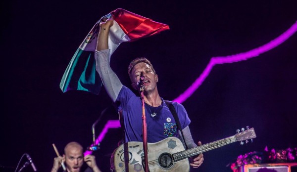 Luces pirotécnicas salieron sobre el escenario y en la pantalla situada detrás se podía ver la flor de la vida, que forma parte del arte del álbum. En un ambiente de fiesta los saltos aparecieron junto a Chris Martin (voz), Guy Berryman (bajo), Jon Buckland (guitarra) y Will Champion (batería).