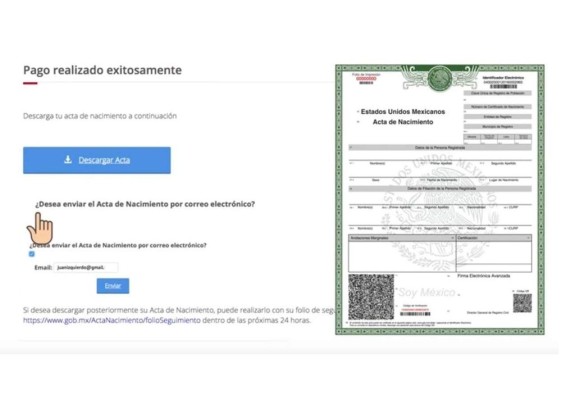 4.- Descargar e imprimir el acta de nacimiento. Se puede recibir por correo electrónico.
