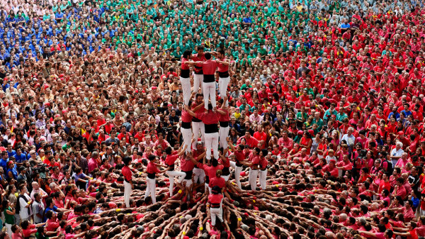 Ahora imagínense que lo multiplica por 1.000, y se obtienen las competiciones de torres humanas que se celebran cada otoño en España. La tradición de la construcción de torres humanas, o 'castells' en catalán, es muy antigua y se remontan nada menos que a 1712. Los equipos compiten para construir torres de gente súper altas y complicadas; con el récord, establecido a principios de este año, en 10 niveles de alto.