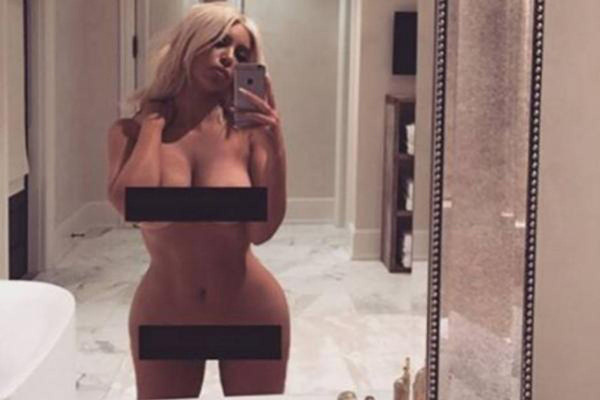Kim Kardashian publicó en Instagram una imagen en la que se puede ver su trabajado físico, sin ninguna prenda encima... claro que con una franja negra en sus partes íntimas.