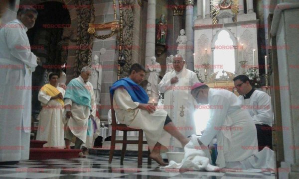 Previo al ritual del lavado de pies, el Obispo de la Diócesis de Mazatlán, Mario Espinosa Contreras, recordó que en la Última Cena Jesús instituyó la eucaristía, el sacerdocio y se proclamó siervo, al quitarse el manto y ponerse de rodillas, realizando una labor que era un signo de cortesía que sólo le correspondía a los esclavos o sirvientes.