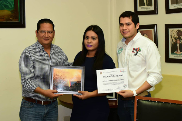 Los ganadores que fueron reconocidos por haber logrado transmitir lo bueno de la juventud y el municipio en sus obras; son Antonio Hernández Páez en el primer lugar con su fotografía “Vista desde el Cerro del Mochomo”; Miriam Lorena López Álvarez quedó en segundo lugar con la imagen “Arcoíris en el cerro de Carricitos”; mientras que en el tercer lugar fue galardonado Jesús Guadalupe Obeso Valdez con la foto titulada “Guamúchil en revolución”.