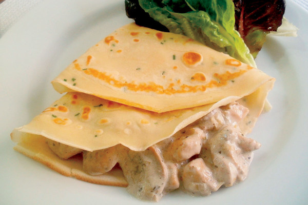 - Ya que hayas preparado todas las crepas, rellénalas con el pollo con champiñones y sirve enseguida.