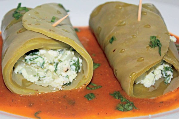 - Acomoda los rollos en un plato y decora con la salsa verde previamente calentada.