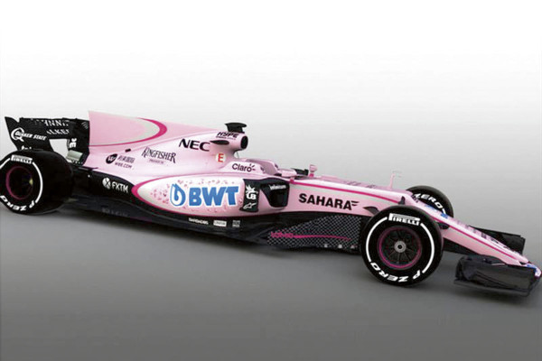 El equipo Force India confirmó el acuerdo con la empresa BWT, lo que provocó que el nuevo VJM10 cambiara radicalmente su decoración, tomando al rosa como color predominante en la carrocería.