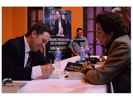 Carlo Tello Diaz ganador del Premio Mazatlán de Literatura por el libro Porfirio Díaz su vida y su tiempo, dio a conocer su libro en una comida el jueves a medio día, ante un grupo de empresarios en la Ciudad de México, su presentador fue el Secretario de Cultura Rafael Tovar y de Teresa.