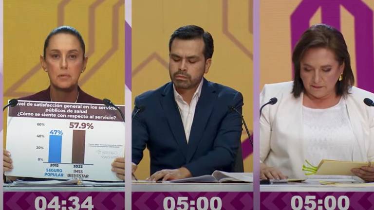 Tómese el caso de salud. Los moderadores leen una pregunta hecha por la ciudadanía y los tres contendientes tienen hasta un minuto para contestar. La pregunta: ¿Cuál es su plan integral para fortalecer el Sistema de Salud Nacional y asegurar el acceso equitativo a servicios de salud para todos los mexicanos y cómo piensa financiar e implementar este plan?