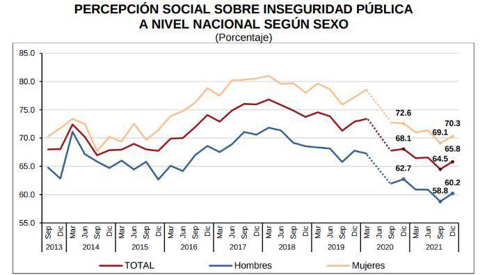 ¿Cómo ha sido el recorrido de esta encuesta en la última década? A grandes rasgos, puede afirmarse que la percepción de inseguridad creció en casi todas las zonas urbanas del País a partir de 2015 y llegó a su punto más extremo en 2018. Para diciembre de 2018, al tiempo en que cambió la administración federal, el 74.6 por ciento de la población mexicana habitante de zonas urbanas consideraba que vivir en su ciudad era inseguro. La tendencia, desde entonces, ha ido a la baja y se ha consolidado incluso en los trimestres posteriores a la pandemia. No son malas noticias.