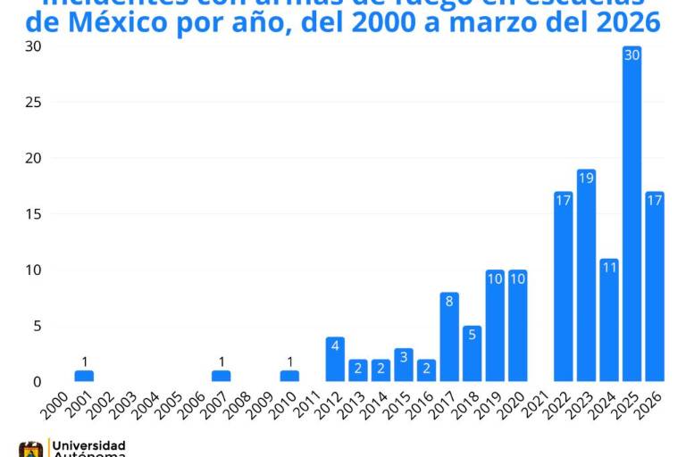 Como se puede observar, la cifra más alta de incidentes se presentó en 2025 con 30 casos, pero hay que advertir que apenas está comenzando abril y 2026 ya tiene 17 casos, por lo que, de seguir esa tendencia, el año actual se convertiría en el nuevo máximo histórico, lo cual debe ser una señal de alerta para las autoridades de seguridad y de educación en todos los niveles de gobierno.