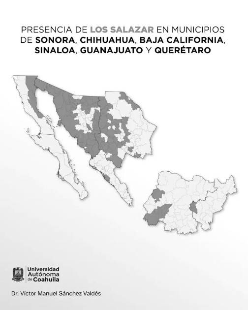El territorio de los Salazar no es menor, tienen presencia en 81 municipios de seis entidades federativas. En Sonora operan en 44 de los 72 municipios, en Chihuahua en 26 de los 67, en Guanajuato en siete de los 46, en Baja California en dos de los siete, en Querétaro en uno de los 18, que es la capital y, por último, en Sinaloa en uno de los 20, que es Navolato. En el enlace (1) pueden tener acceso a las fuentes que soportan la presencia de la organización en cada uno de los 81 municipios.