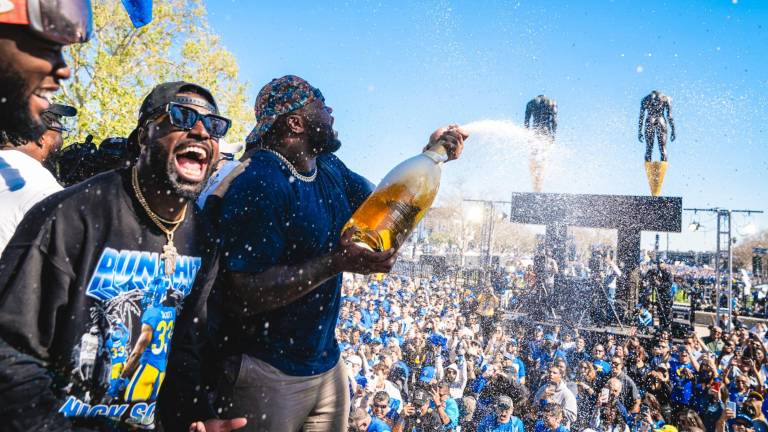 Más deportes Los tres jugadores de los Rams, durante el desfile en Anaheim.( Fotos: Cortesía ) Más deportes Cooper Kupp, Aaron Donald y Matthew Stafford celebran en Disneyland, en Anaheim 14 febrero 2022
