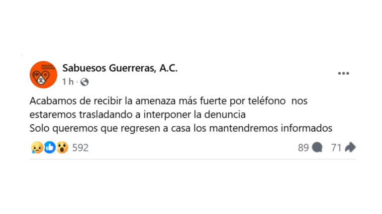 Culiacán Culiacán ‘Acabamos de recibir la amenaza más fuerte por teléfono’, alerta Sabuesos Guerreras 27 noviembre 2024