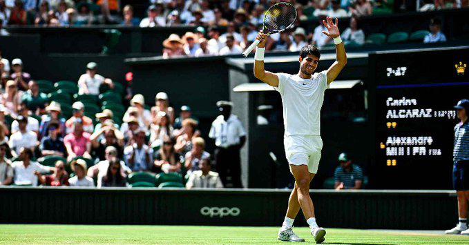 Más deportes Carlos Alcaraz luce cómodo en el pasto sagrado de Wimbledon.( Foto: @Wimbledon ) Más deportes Carlos Alcaraz se lo pasa bien y avanza a semifinales en Wimbledon 8 julio 2025