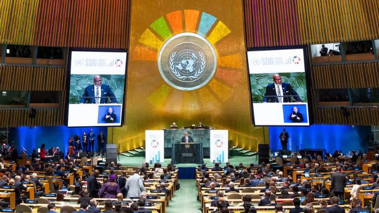 Internacional Cumbre de los SDG en el auditorio de la Asamblea General de la ONU( Foto: ONU/Cia Pak ) Internacional Actuaremos ahora, afirman los líderes mundiales, al adoptar una declaración para acelerar la Agenda 2030 18 septiembre 2023