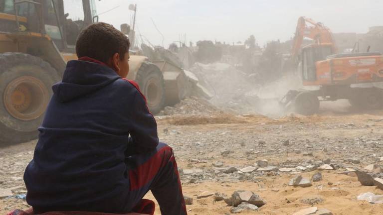 Internacional Un niño observa la recuperación de cadáveres bajo los escombros de una casa en el barrio de Al-Nasr, al este de la ciudad de Rafah, en el sur de la Franja de Gaza.( Foto: Noticias ONU/Ziad Taleb ) Internacional Insta el Consejo de Derechos Humanos al embargo de armas a Israel 5 abril 2024