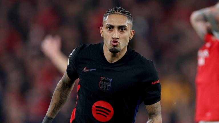 Futbol Raphinha anota el gol del triunfo del Barcelona.( Foto: X @ChampionsLeague ) Futbol Raphinha y el Barcelona sacan petróleo en Lisboa 5 marzo 2025