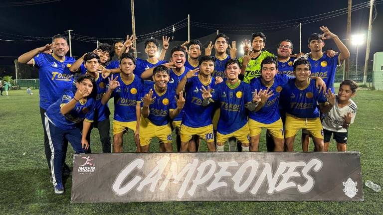 Futbol Toros Mazatlán-Aluminio y Cristales El Pollo festeja su título.( Foto: Imdem ) Futbol Toros Mazatlán, ¡tricampeón de la Juvenil C! 27 junio 2024