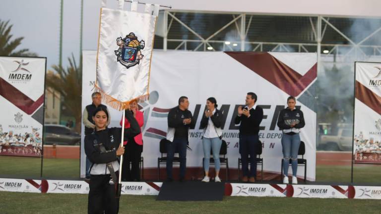 Más deportes Jennifer Valeria Tirado Chavarín fue la encargada de recibir el estandarte mazatleco.( Foto: Noroeste/Adán Valdovines ) Más deportes Abanderan a Selección Mazatlán que competirá en estatal de los Juegos Conade 10 febrero 2023