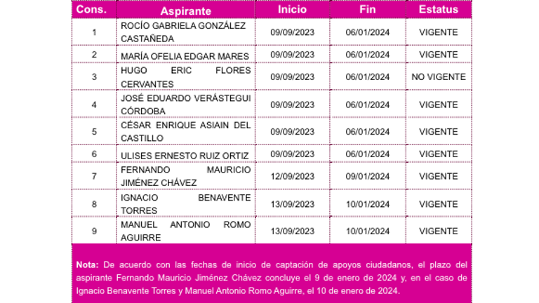 Nacional A nueve personas el INE les autorizó recabar firmas como aspirantes presidenciales.( Foto: INE ) Nacional Confirma INE que no habrá candidatos independientes en elección presidencial de 2024 8 enero 2024