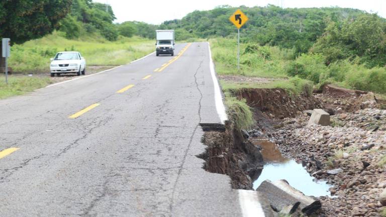 Mazatlán Algunos de los daños que dejó el huracán “Nora” en la Carretera Internacional 15 México Nogales, en el tramo Mazatlán-Culiacán.( Juvencio Villanueva ) Mazatlán Llaman a conductores a tomar precauciones ante daños en carretera libre Mazatlán-Culiacán 4 septiembre 2021