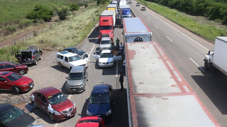 Culiacán Continúa cerrada la autopista Culiacán-Mazatlán.( Foto: Noroeste ) Culiacán Kilométrica fila en la autopista Culiacán-Mazatlán; algunos transportistas tienen días esperando pasar 31 agosto 2021
