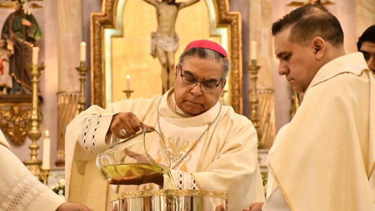 Culiacán En la ceremonia el Obispo recordó las enseñanzas de Jesucristo y agradeció el oficio del sacerdocio, el cual calificó como un don.( Fotos: Analiz Hernández ) Culiacán Obispo de Culiacán recibe renovación de promesas sacerdotales y bendice los santos óleos en la misa crismal 15 abril 2025