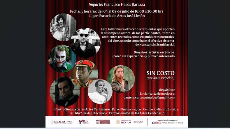 Cultura Este lunes 12 inicia el taller y será sin costo.( Foto: Cortesía/Isic ) Cultura Este lunes 12 inicia en el Taller de Actuación en Teatro y Cine 9 febrero 2024