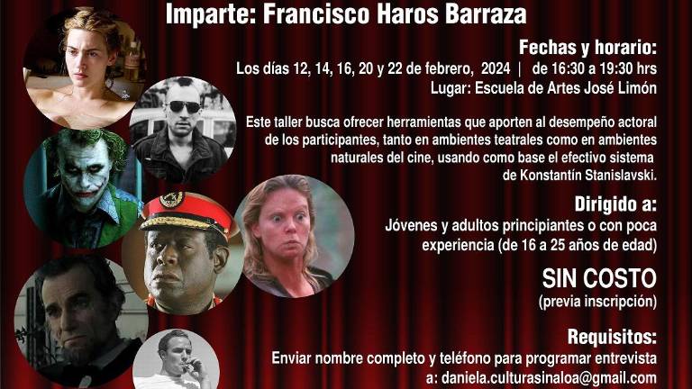 Cultura El taller de Actuación en Teatro y Cine lo impartirá Francisco Haros.( Foto: Cortesía/Isic ) Cultura Invitan al Taller de Actuación en Teatro y Cine, en la ‘José Limón’ 30 enero 2024