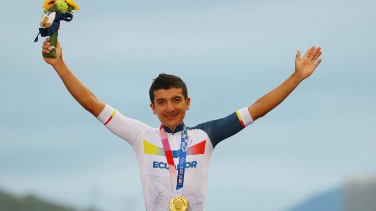Más deportes Más deportes El campeón olímpico Richard Carapaz montará una bicicleta dorada en la Vuelta a España 12 agosto 2021
