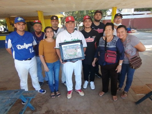 Beisbol El homenajeado, Francisco Quevedo Ruiz, acompañado por sus familiares.( Cortesía ) Beisbol "Homenajean a Quevedo Ruiz en la Liga de Beisbol Mercados 2020" 6 noviembre 2020