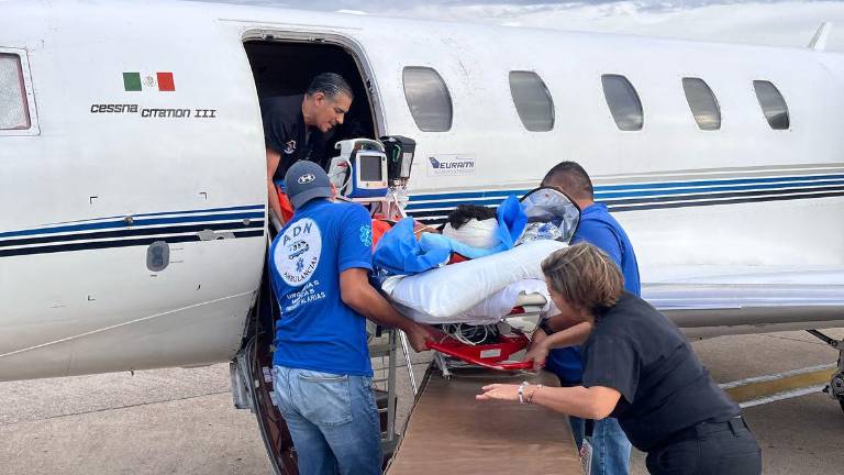 Mazatlán El menor fue trasladado a Sacramento la noche de este miércoles a bordo de una ambulancia aérea.( Foto: Cortesía Club Shriner de Mazatlán ) Mazatlán Vicente, menor de Elota con graves quemaduras, es trasladado a Estados Unidos para su recuperación 13 junio 2025