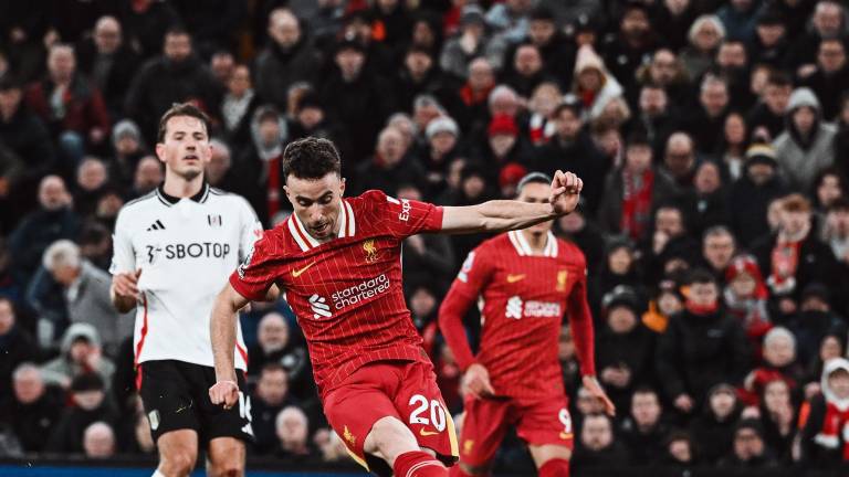 Futbol Diogo Jota anotó el gol que sentenció el empate del Liverpool ante el Fulham.( Foto: @LFC ) Futbol Liverpool y Arsenal dejan puntos con sendos empates 14 diciembre 2024