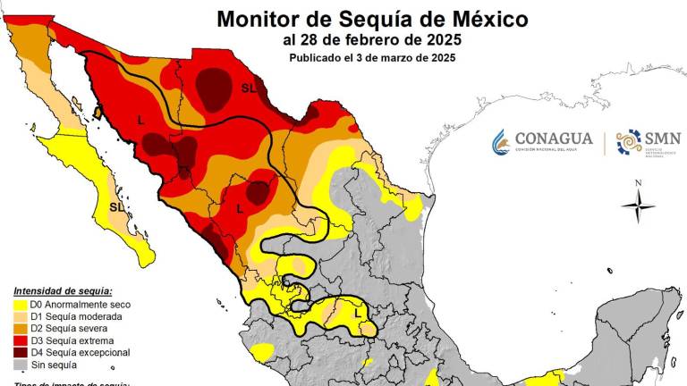 Culiacán Zonas del País donde se mantienen condiciones de sequía.( Foto: Conagua ) Culiacán Choix y El Fuerte siguen en sequía, pese a las lluvias 27 agosto 2025