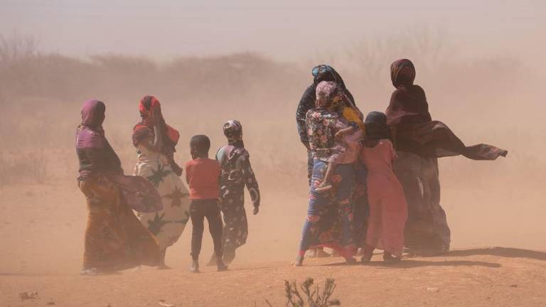 Internacional Mujeres y niños en medio de una tormenta de arena en la región Somali de Etiopía.( Foto: UNICEF/Mulugeta Ayene ) Internacional Aumenta el polvo atmosférico en América Latina, el Caribe y España 19 octubre 2023