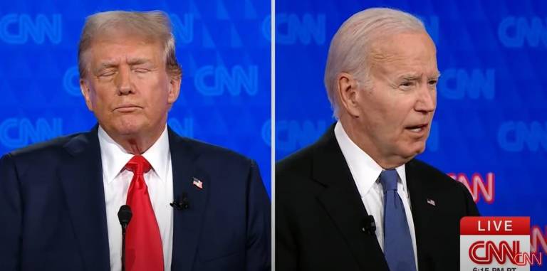 Internacional Durante un debate, Joe Biden y Donald Trump intercambiaron acusaciones y críticas sobre todo en torno al tema migratorio.( Foto: Captura de video ) Internacional Trump tacha a migrantes de asesinos y acusa a Biden de haber abierto la frontera a ‘criminales’ 27 junio 2024