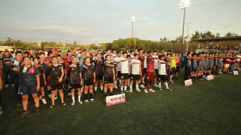 Futbol Los jugadores rinden la protesta deportiva.( Foto: Noroeste/Carlos Zataráin ) Futbol Oficializan apertura de Estatal de futbol, en Mazatlán 7 julio 2023