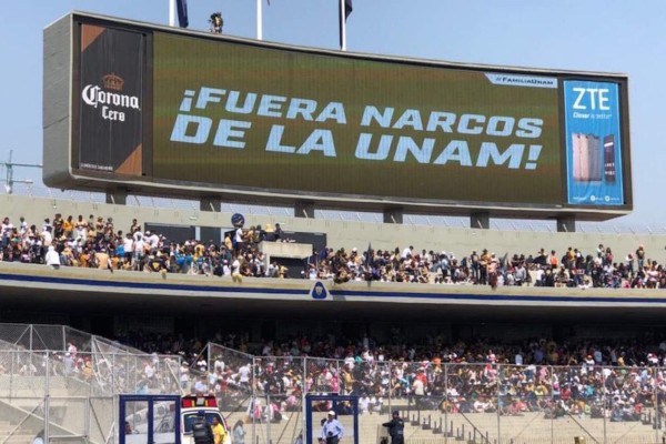 Nacional ( ) Nacional "“¡Fuera narcos de la UNAM!”: mensaje aparece durante encuentro de Pumas y Chivas en CU" 25 febrero 2018