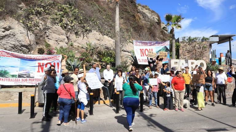 Mazatlán Los manifestantes piden que no se sigan privatizando los espacios públicos de Mazatlán.( Fotos: Noroeste/Carlos Zataráin ) Mazatlán Clausuran de manera simbólica la obra de la tirolesa en El Faro 4 mayo 2024