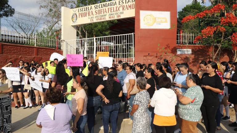 Mazatlán Afuera de la secundaria “Sofia Felix de Ramos”, padres de familia y estudiantes se manifestaron.( Fotos: Noroeste/Juvencio Villanueva ) Mazatlán Acusan en El Habal que su secundaria es usada por Usicamm para jubilar maestros con salarios altos 13 junio 2024