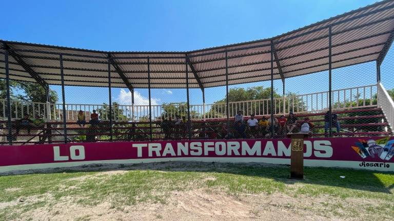 El Sur El estadio cuenta con gradas, sanitarios e iluminación.( Fotos: Cortesía ) El Sur Entregan nuevo estadio de beisbol en Chametla, Rosario 12 julio 2023