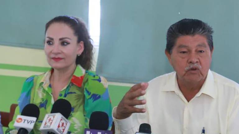 Mazatlán Maribel Chollet Morán y Aarón Flores Estrada, en conferencia de prensa.( Foto: Juvencio Villanueva ) Mazatlán Cuestiona Chollet a ex priistas que se sumarían a Morena 22 septiembre 2023
