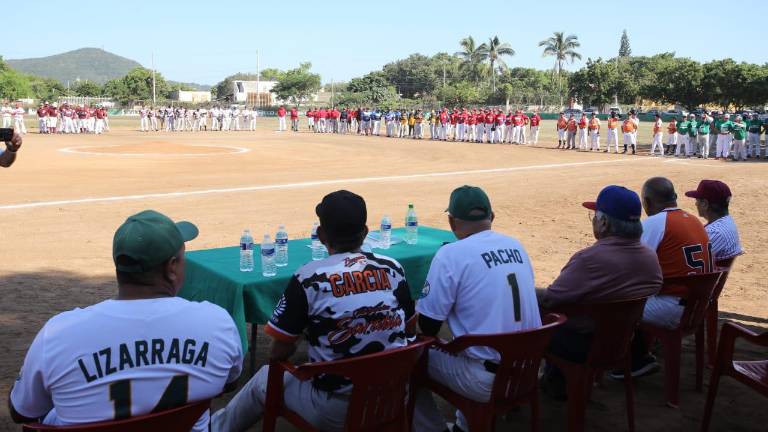 Beisbol Los jugadores atentos a la ceremonia inaugural.( Foto: Noroeste/Adán Valdovines ) Beisbol Inauguran en Mazatlán primera edición de Nacional de Beisbol Veteranos 7 octubre 2022