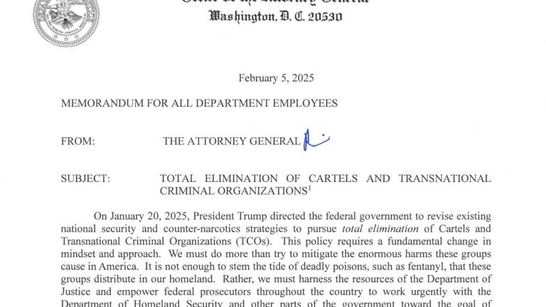 Internacional La nueva Fiscal General de EU, Pam Bondi, emitió un memorando en busca de erradicar los cárteles criminales transnacionales.( Foto: Tomada de Internet ) Internacional Fiscalía de EU pide ‘eliminación total de cárteles y organizaciones criminales transnacionales’ 6 febrero 2025