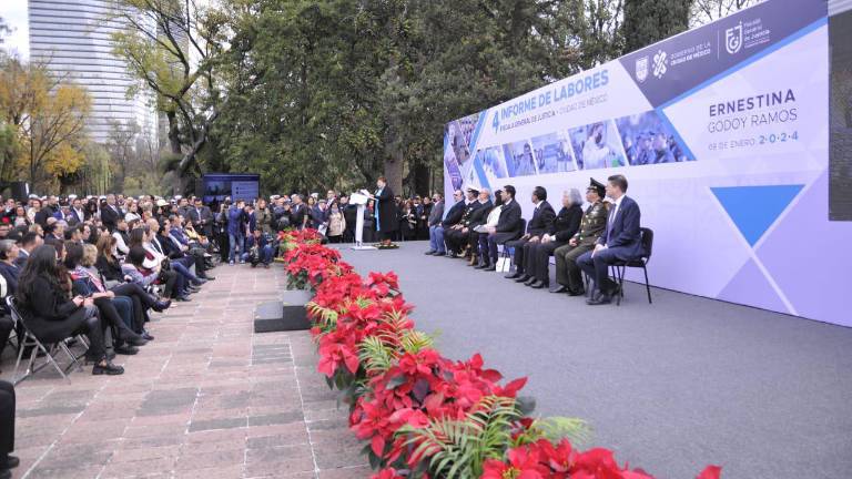 Nacional Ernestina Godoy Ramos presenta su informe de actividades al frente de la Fiscalía de la CDMX.( Foto: @FiscaliaCDMX ) Nacional Claudia Sheinbaum invita a Ernestina Godoy a participar por el Senado 9 enero 2024