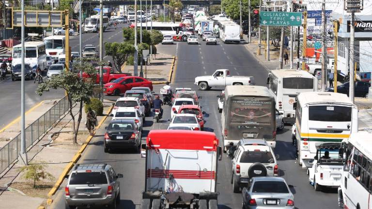 Mazatlán El carril de sur a norte es donde se presenta el mayor flujo de vehículos.( Fotos: Rafael Villalba / Belizario Reyes ) Mazatlán Se registra fuerte tráfico vial en las avenidas Río Piaxtla y Ejército Mexicano, de Mazatlán 16 marzo 2021