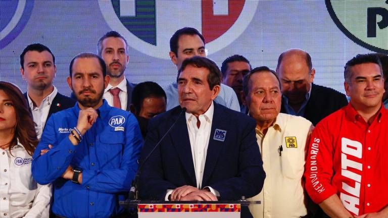 Culiacán En un evento con los líderes del PAN, PRI y PRD realizado la semana pasada, el Partido Sinaloense unió fuerzas con dicha coalición para el proceso electoral de 2024.( Foto: Roberto Armenta ) Culiacán Adhesión del PAS a frente opositor es un acto de desesperación, afirma Feliciano Castro 28 noviembre 2023