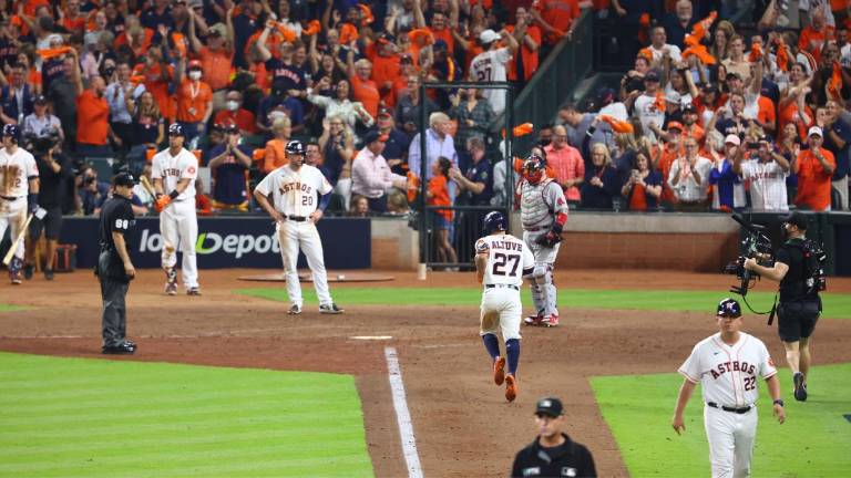 Beisbol José Altuve conecta jonrón por Astros.( Foto: Twitter @LosAstros ) Beisbol Correa y Altuve guían a Astros al triunfo ante Medias Rojas 15 octubre 2021